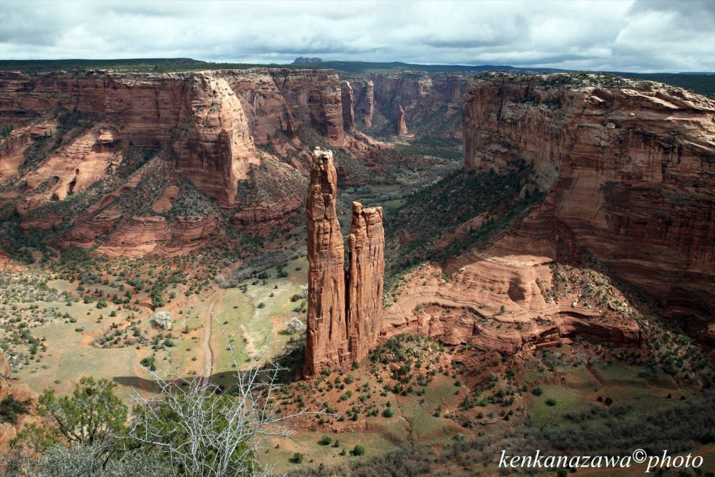 蜘蛛女は、世界を作った全知全能の女神この岩に住むという。らせん状にエネルギーが空に達し宇宙をつかさどる。ナバホ族はこの女神を恐れ崇めている。